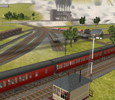 Hellifield Pickup The ‘Ribblesdale’ route covers the section of the Settle & Carlisle Railway from Blea Moor to Settle. In order to demonstrate the operation of some new and improved interactive industries included in the TS2009: S&C package, liberties have been taken with historic reality to concentrate these industries over this section of line Having started from Carlisle many hours before dawn, the Hellifield pickup plods mid-morning into Blea Moor up refuge loop to take water and allow an express to pass. Ahead are 2.5 hours of shunting Ribblehead yard and making quicker drop-offs or pickups at Horton, Helwith Bridge, Stainforth Sidings and Settle. These latter locations have the drop-offs unloaded and the pick-ups loaded by local ‘Jinty’ shunters. |