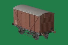 This model represents the standard BR 12T van, 19063 examples of which were built between 1951 and 1958 to diagram 1/208. Additionally 3699 vans were built to diagram 1/213 with ply sides and doors. In theory all of the diagram 1/208 were to the same design but the early lots had Morton brakes, the later ones fully fitted 8 shoe brakegear. There were also variations with the buffers used, and it was not unusual for planked vans to be given replacement ply doors at some stage.