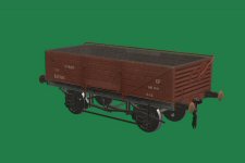 The diagram 1/039 high goods wagon had a tarpaulin bar to avoid the situation where water could lie on the tarpaulin and eventually leak through onto the cargo. A total of 5650 were built at Derby and Ashford in 8 lots between 1951 and 1957.