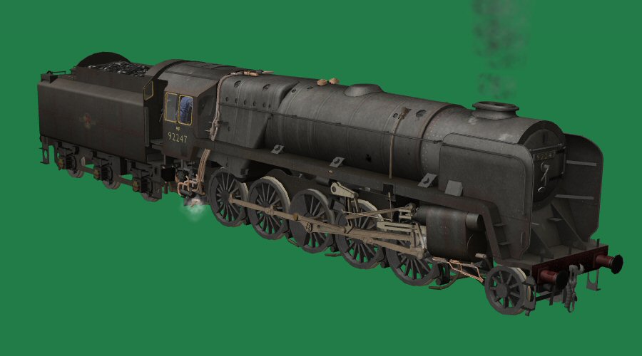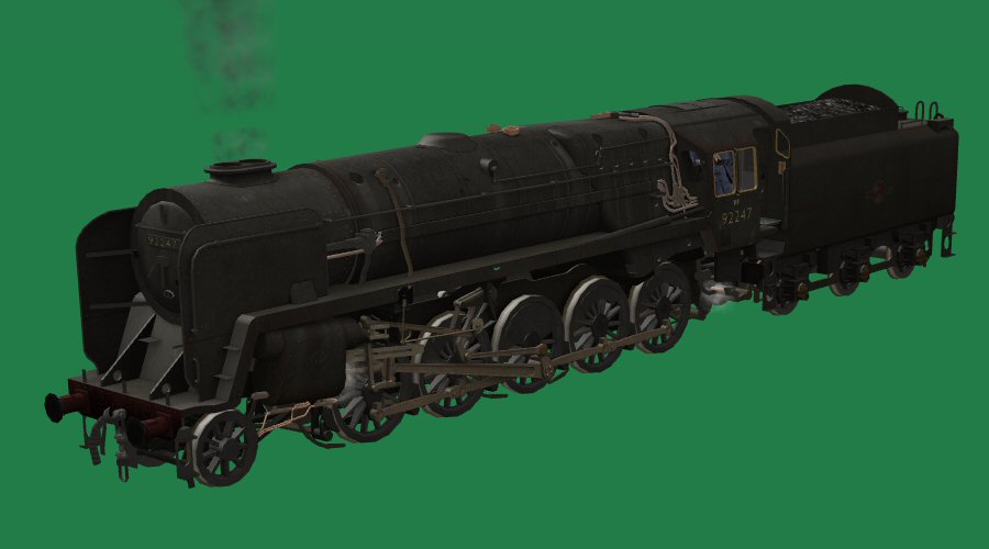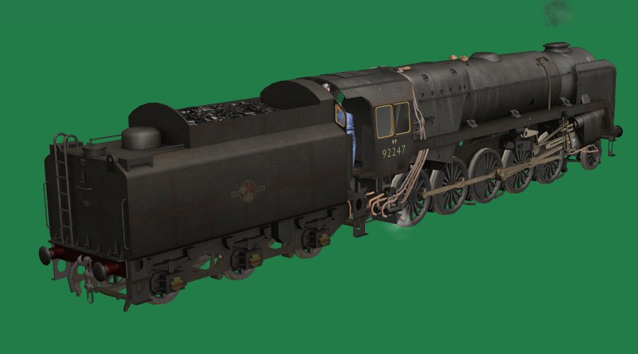 The BR Standard 9F is the last design of steam locomotive built for British Railways. The class was introduced in 1954 and designed at Brighton works. A total of 251 locomotives where built from January 1954 to March 1960. The locomotive represented is based on those found on the BR Eastern Region. This model is by Rob Hill (lielestosbrat). Based on his previous release, it has been developed further during TC3 and has been updated now for TS2009:S&C.