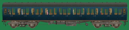 These are the 8 types of Mk1 coach which appeared in the Regional Railways livery, the BSK and BSO also have the version with the green stripe above the guards van. These coaches were created in cooperation with George Danzy-Smith (gds) Types included are; BG, BSK, BSO, FK, SO, TSO |